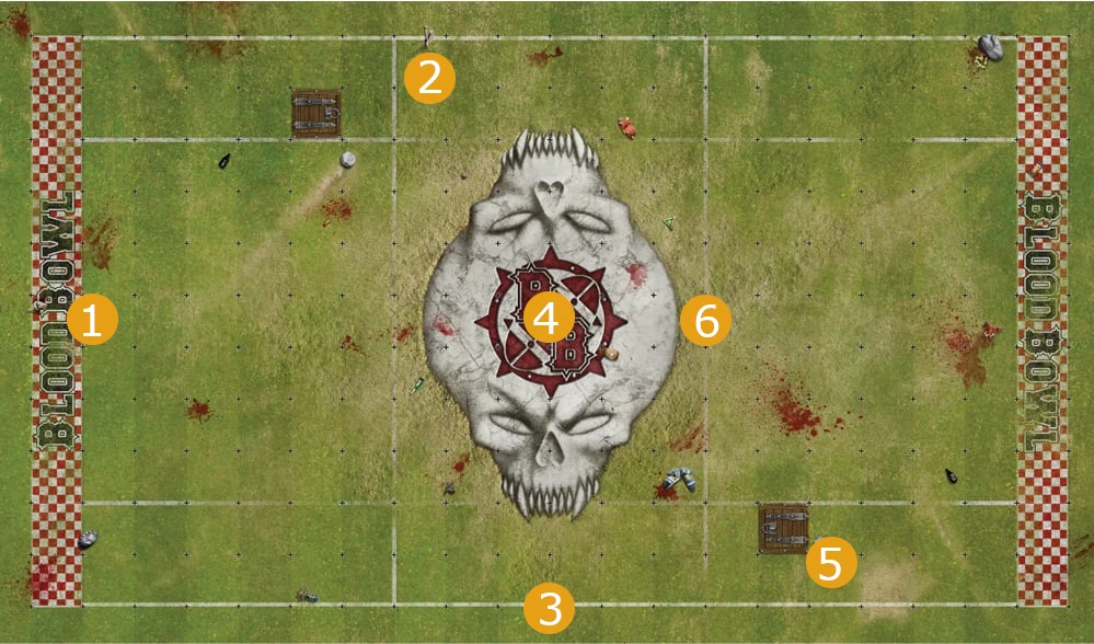 A Blood Bowl Sevens pitch shares many similarities with a standard Blood Bowl pitch, but there are a few key differences to be aware of. A Blood Bowl Sevens pitch features: